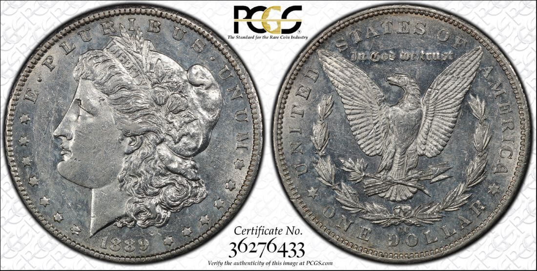 Brilliant with clean cheek and devices. Scattered bag marks on the obverse and reverse fields sends this into the au category. Very attractive for the grade. Key CC dollar for the collection.