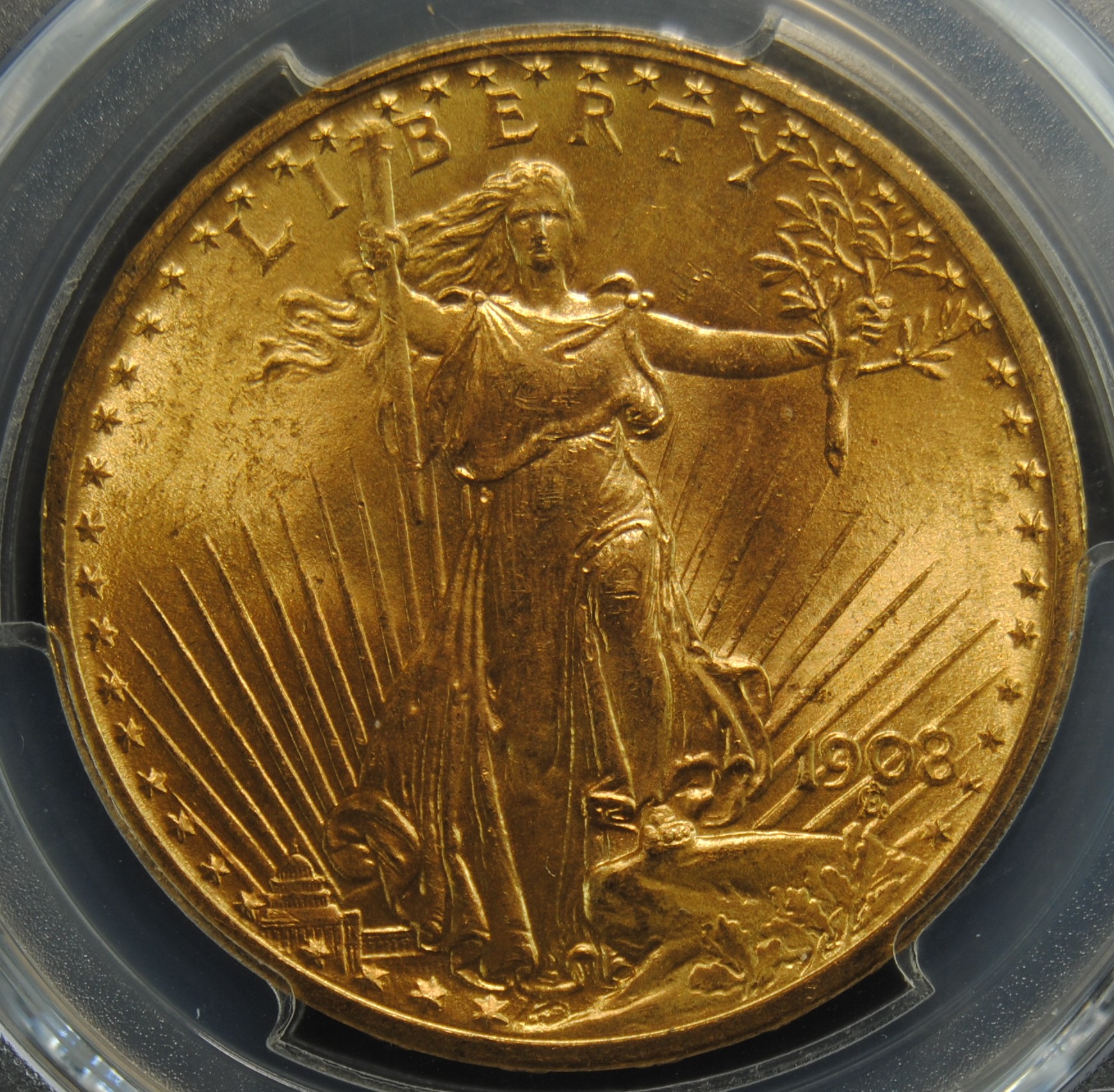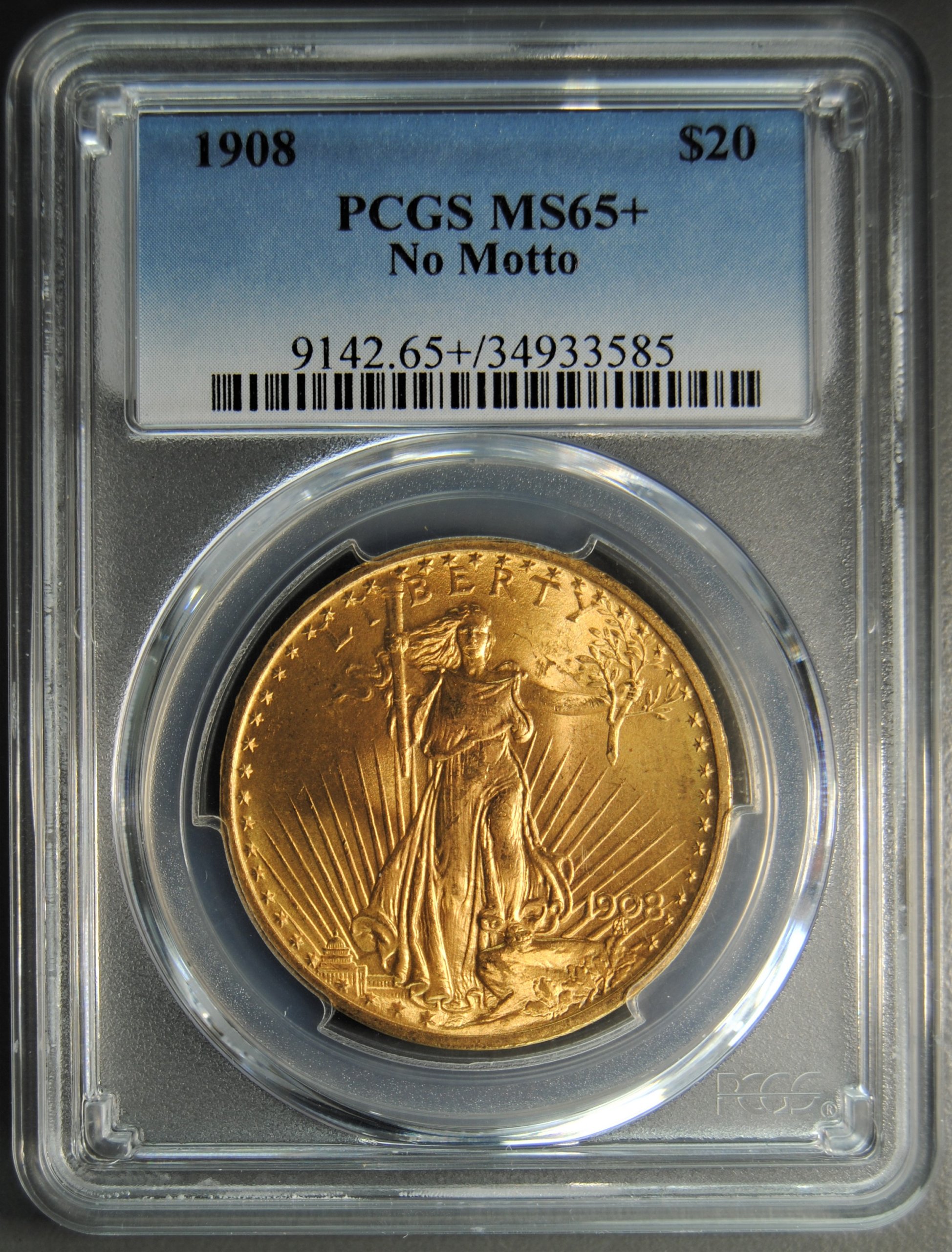 1908 NO MOTTO $20 SAINT GUADENS PCGS MS-65+ quantity