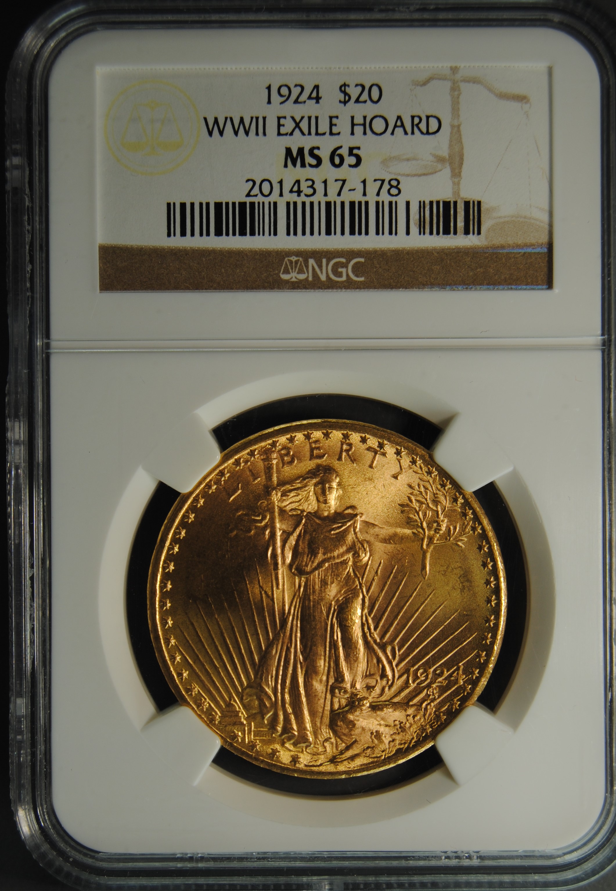 This coin was part of a family’s possessions during world war II exile and remained there for 65 years. During the chaotic period prior to world war II, this and other coins were kept to sustain the family through the worst possible situation. Just subsequent to the Nazi invasion of this family’s home country in 1940, each of these coins was sewn into the lining of a leather coat.With great risk, they were spirited out to a safe-haven neutral country, where they have been kept ever since. Brilliant gems with a great pedigree.